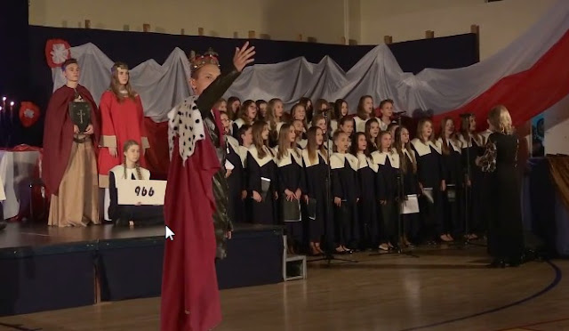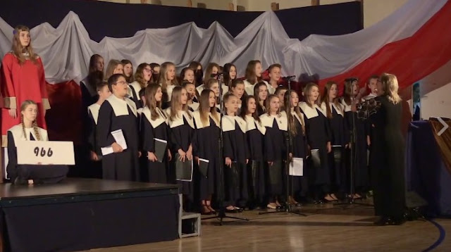 Młodzi aktorzy spisali się wspaniale. Spotkanie umilił znakomity chór, śpiewający najpiękniejsze polskie pieśni patriotyczne.