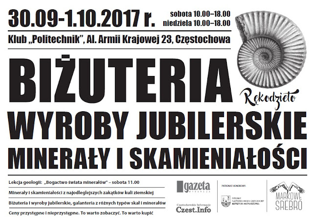 Dziś i jutro zapraszamy do Klubu Politechnik, Al. Armii Krajowej 23 w Częstochowie, na Targi i Giełdę Wyrobów Jubilerskich, Minerałów i Skamieniałości.Giełdę można odwiedzać w godz. 10-18.
