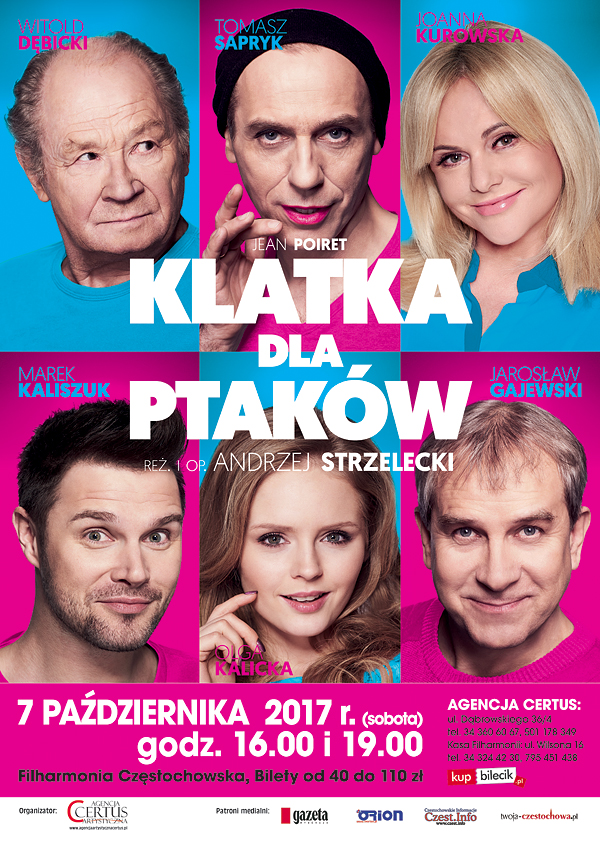 KLATKA DLA PTAKÓW to dwie godziny wspaniałej zabawy, której gwarancją są wspaniali aktorzy w rolach, w jakich nie spodziewacie się ich Państwo zobaczyć, przekład Kuby Wecsile i Karola Klementewicza ( tłumaczy m.in. "Rodzinki.pl"), reżyseria Andrzeja Strzeleckiego oraz producent Teatr Gudejko - producent takich hitów jak: "Goło i wesoło", "Między łóżkami" czy "Dziwna Para".